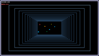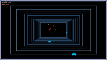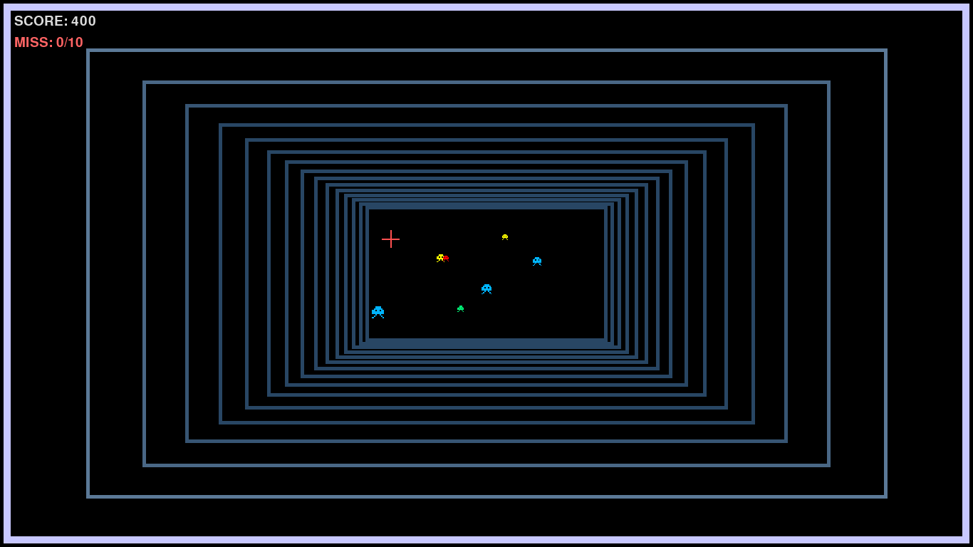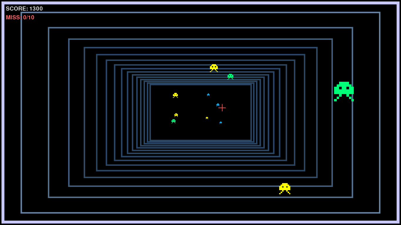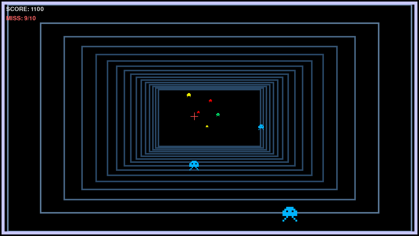 You're flying through a corridor with swarms of Aliens coming towards you. If you miss more than 10 it's Game Over.